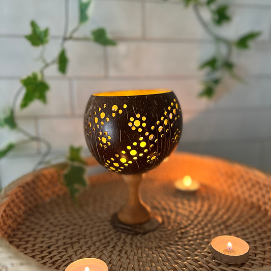 Hand Carved Coconut Shell Candle Holder