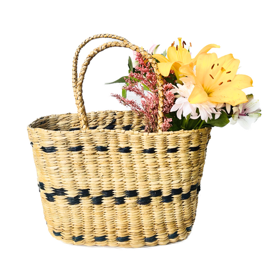 Our handwoven market bags made from natural palmyra and reed are the perfect addition to a sustainable lifestyle. They are durable, and their size is ideal for all your shopping needs.